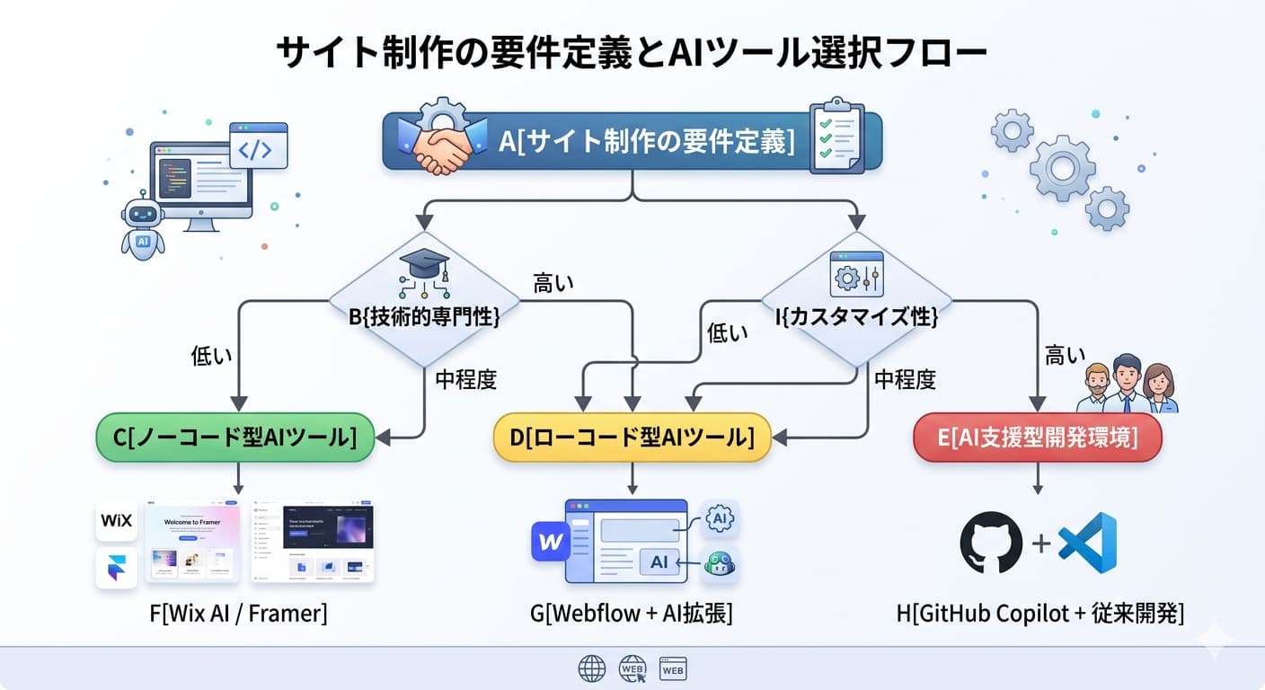 AIによるWebサイト制作で実現できること、プロジェクト規模別のおすすめツール、効果的な組み合わせ方を初心者にもわかりやすく解説します。