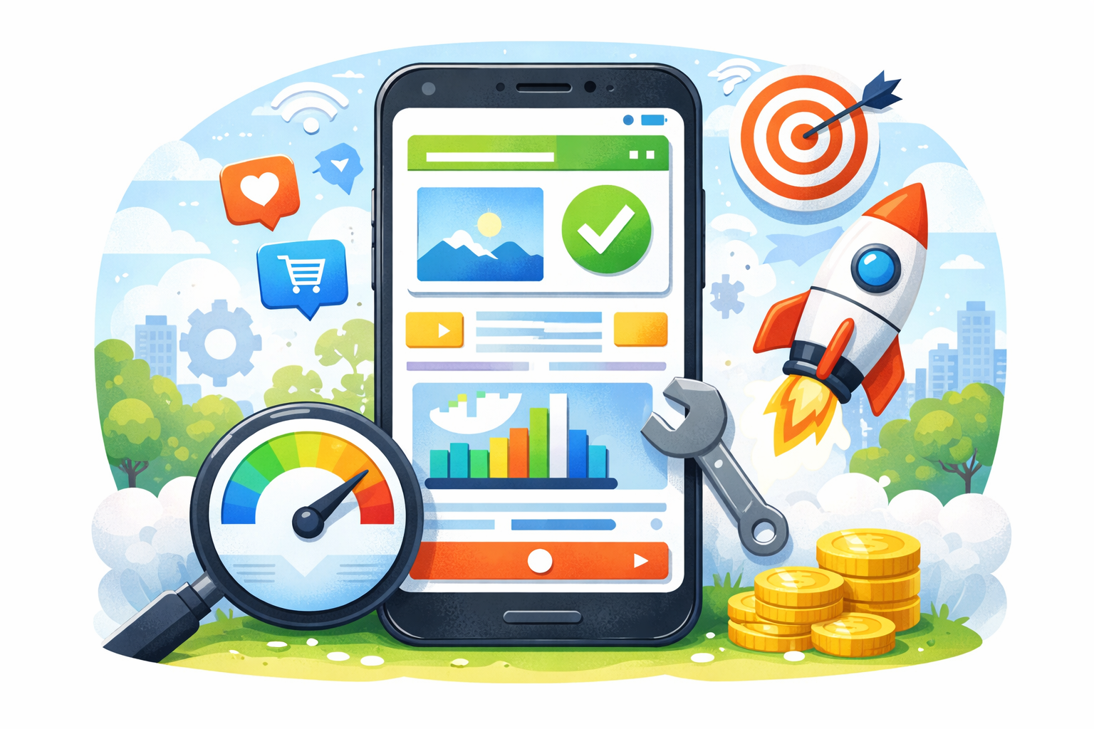 モバイル最適化は必須で、特に表示速度とタップ領域に注意する
