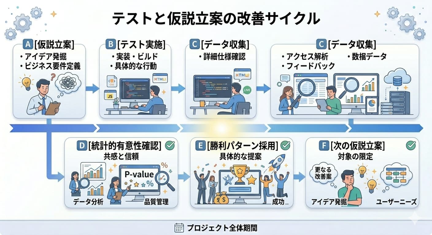 A/Bテストで継続的に改善し、データに基づいた意思決定を行う